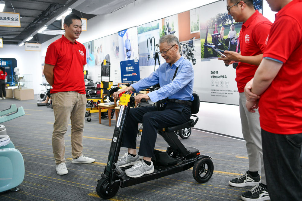 2024年10月12日,又名老东说念主在体验折叠电动代步车。位于深圳的老年用品市场“深业·健康汇”向市民绽放,展示居家安全、文娱活命、智能照护等50余个品类、数百种智能居家适老家具,蛊惑广大市民前来了解、选购。新华社记者梁旭 摄