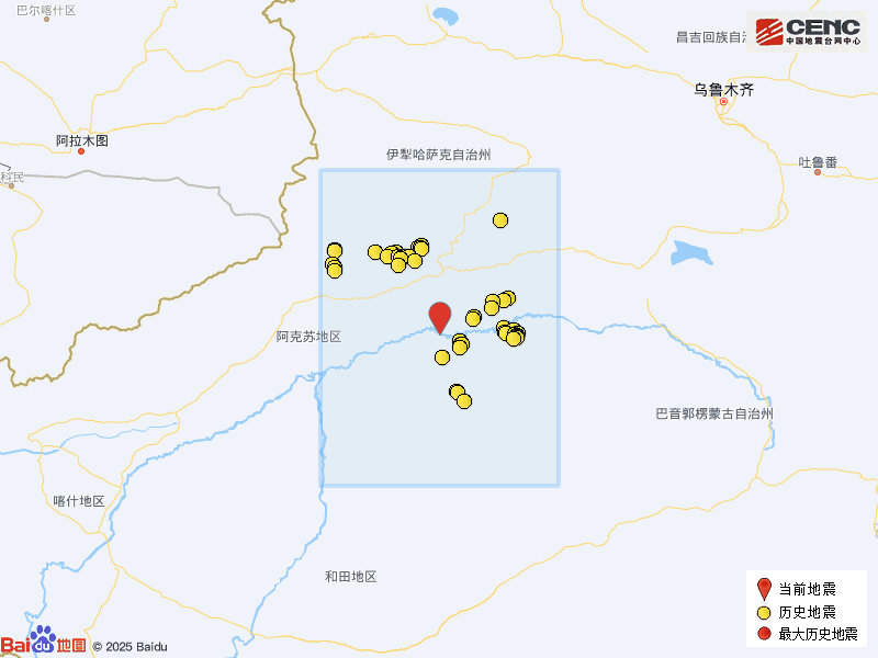 凭据中国地震台网速报目次,震中左近200公里内近5年来发生3级以上地震共509次,最地面震是2023年1月30日在新疆阿克苏地区沙雅县发生的6.1级地震(距离本次震中121公里),按震级大小前50次历史地震离别如图。