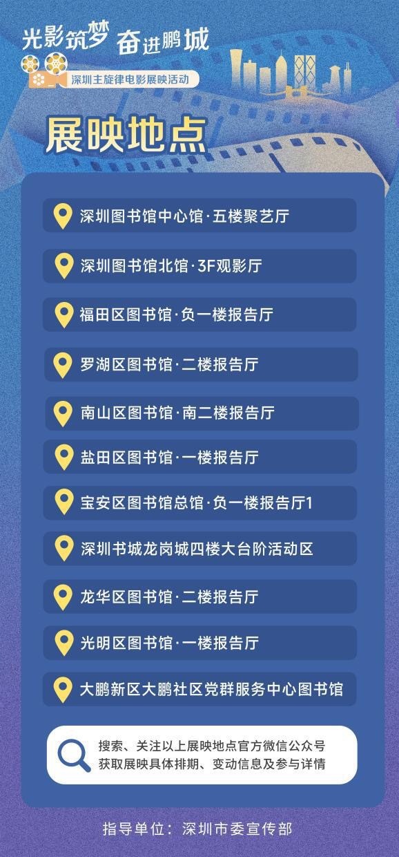 “光影筑梦·奋进鹏城”步履8月精良开启!110场展映步履在深圳藏书楼、南山区藏书楼、福田区藏书楼、龙华区藏书楼等全市11家藏书楼、书城及党群就业中心同步开展,为市民打造“家门口”的电影文化盛宴。