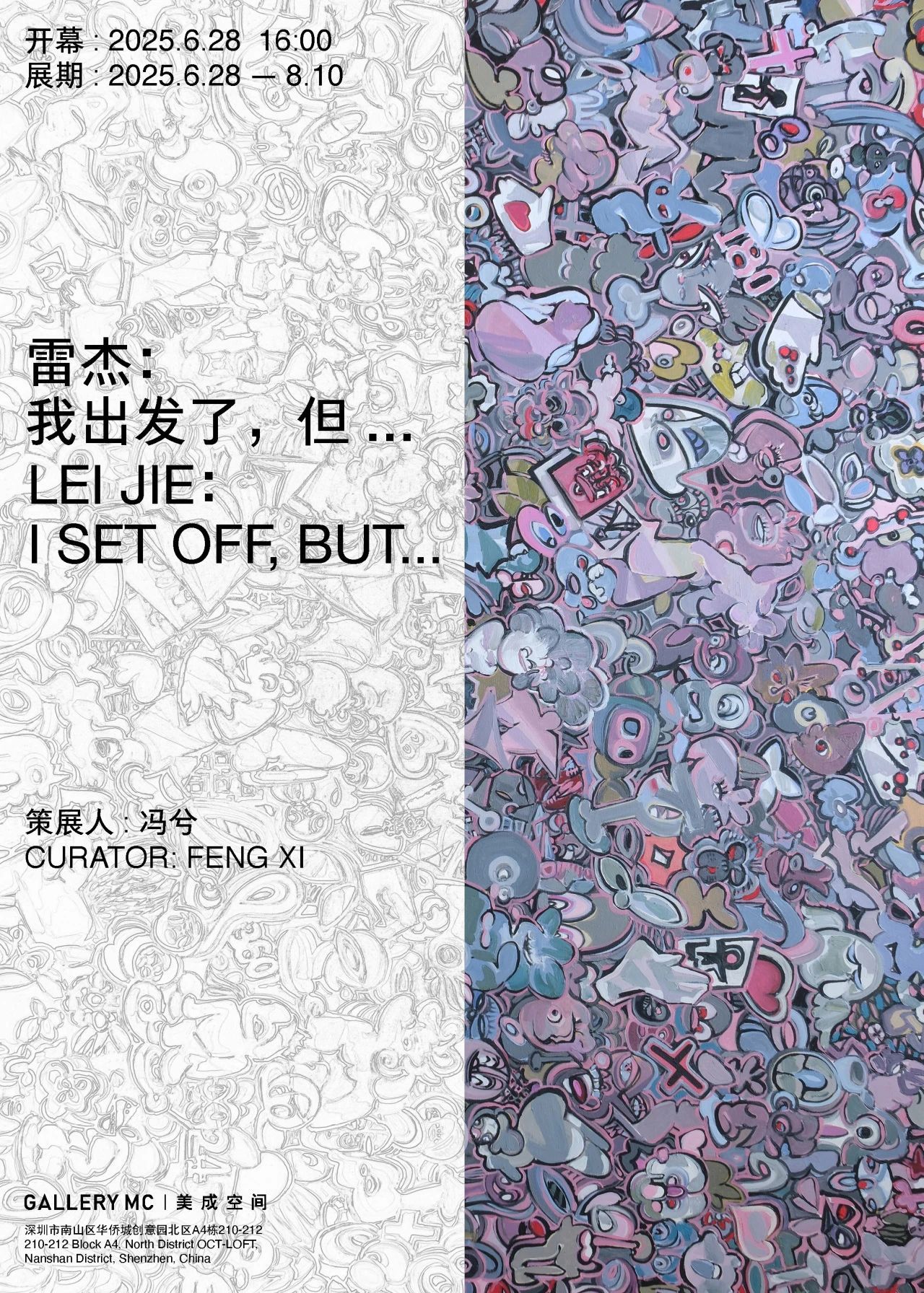 “我动身了”,也许是雷杰在此时阶段的肇始点所作念出的动作,或者像是自我与时分的对话。也许,对话即是画笔的每一次纠结,莫得台词的锚定,情感的碰撞投入偶而性的裂变之中,试图让每次的创作成为独处的节点,再行塑造着"动身"的界说。“但…”,这个未完成的语法结构,并非指涉申辩的意向,而是基于无限可能性的抒发,放弃了念念维和手的惯性,将我方悬浮在某个未知的纬度,取得更大的怒放性,逃离绘图固有的刚烈所设立的限度和鸿沟。